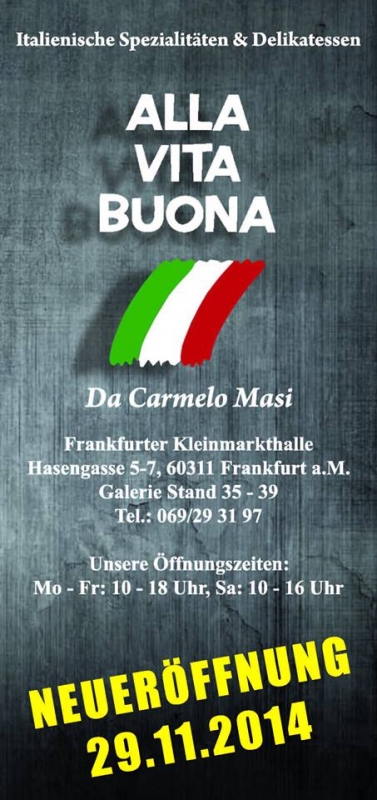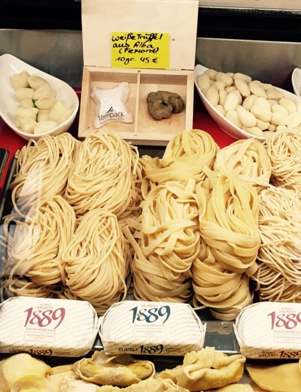 Frau Masi weiß was sie tut und ist Italienerin der ersten Stunde in Frankfurt. Sie zaubert die frischesten Pasta Gerichte, die man sich vorstellen kann. Zwischen italienischer Feinkost werden hier die Pasta mit Trüffelfüllung oder Steinpilze kurz vor dem Servieren frisch zubereitet. Beim Warten hört man das Rattern der „Nudelmaschine“ - frisch wie sonst nirgends. In der Luft liegt der unverkennbare Duft von köstlichem Olivenöl, Limone, frischen Parmesan… Außerdem gibt es eine große Auswahl an Italienischen Delikatessen. Alle Zulieferer kennt Frau Masi seit vielen Jahren. Hier bekommt ihr die leckersten und frischesten Pasta Gerichte unverschämt traditionell, bodenständig – à la Mama!