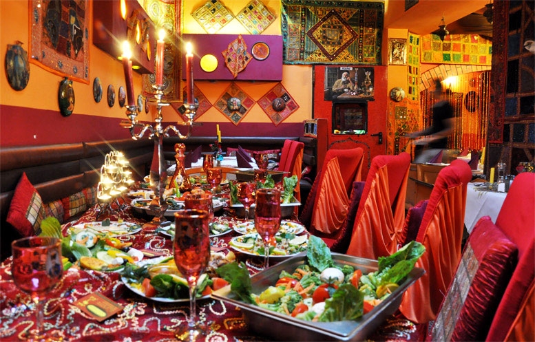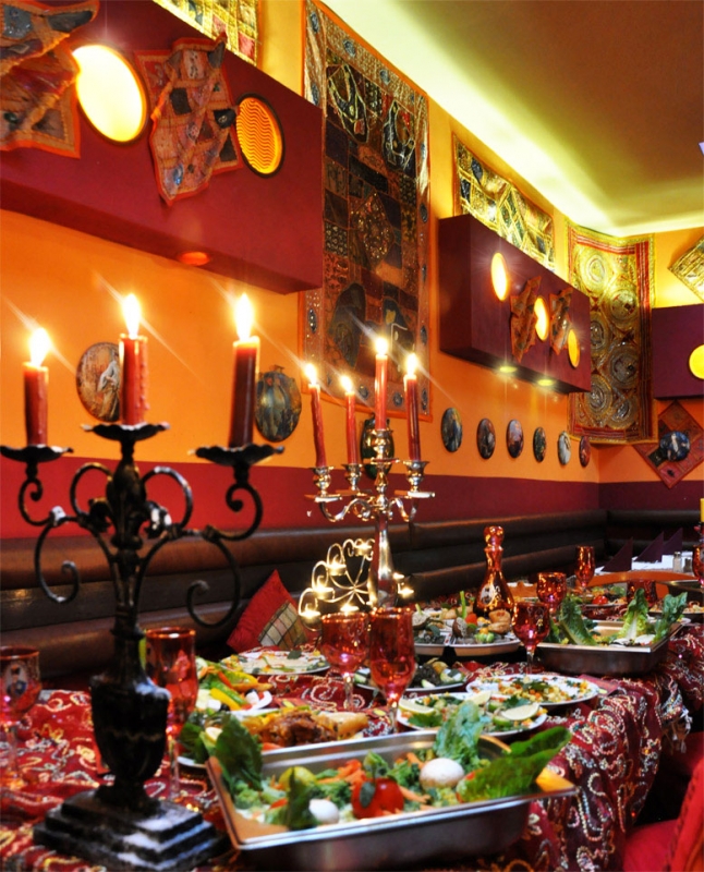 Wie in einem Prinzessinnenmärchen präsentiert sich das Kish, mit vielen bunten Farbtönen, Glaselementen, verspielten Schleifen an den Stühlen, Spiegeln und Vorhängen, die einladen sich dieser orientalischen persischen Küche voll und ganz hinzugeben.